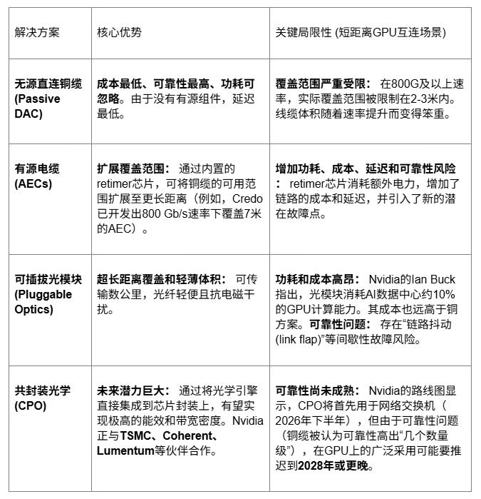GPU密度的急剧增加、链路数量和平均长度的增长,以及攀升的功耗,共同构成了一个强大的结构性驱动力,迫使业界必须寻求比现有铜缆技术更高效、更紧凑的互连介质。
